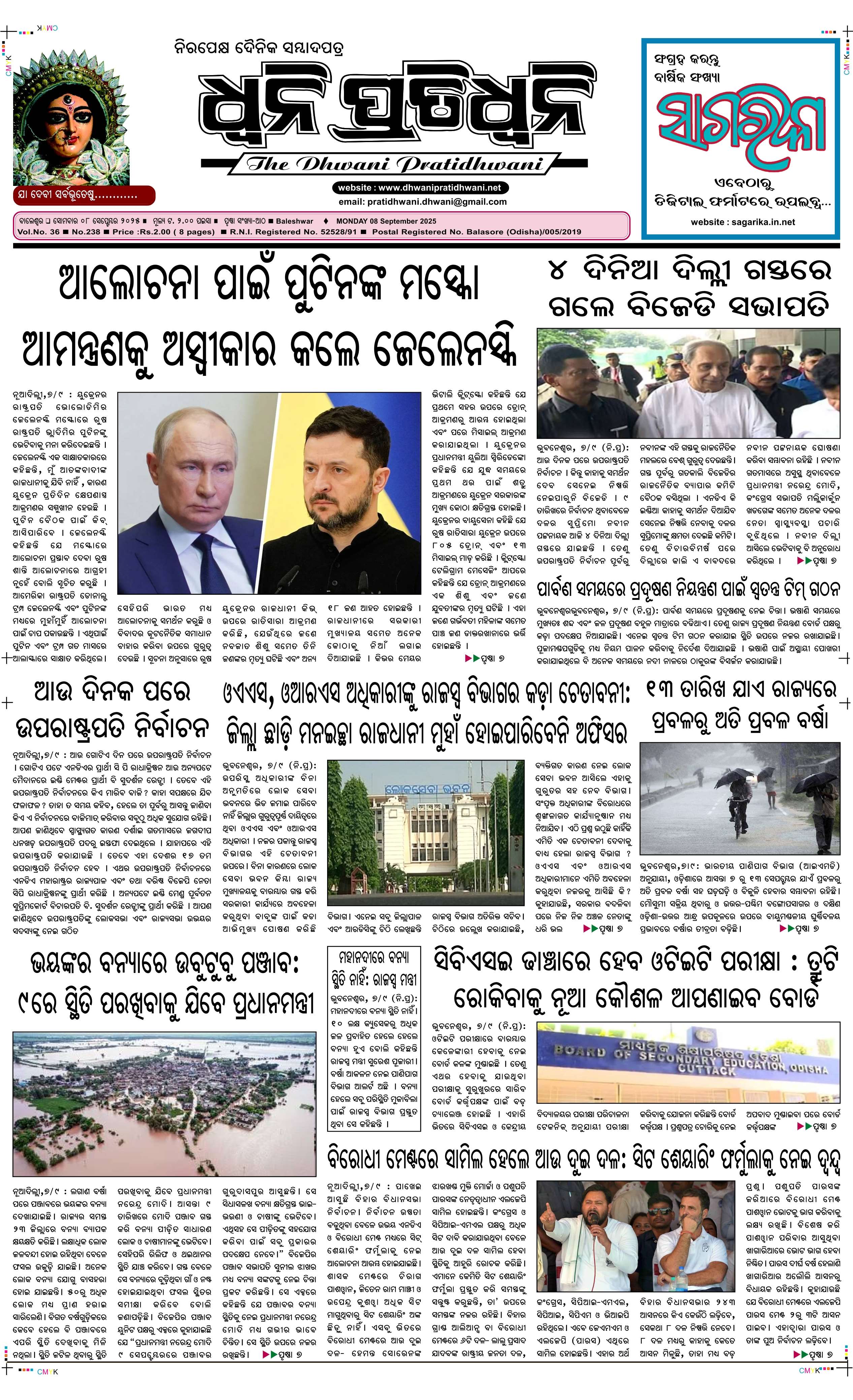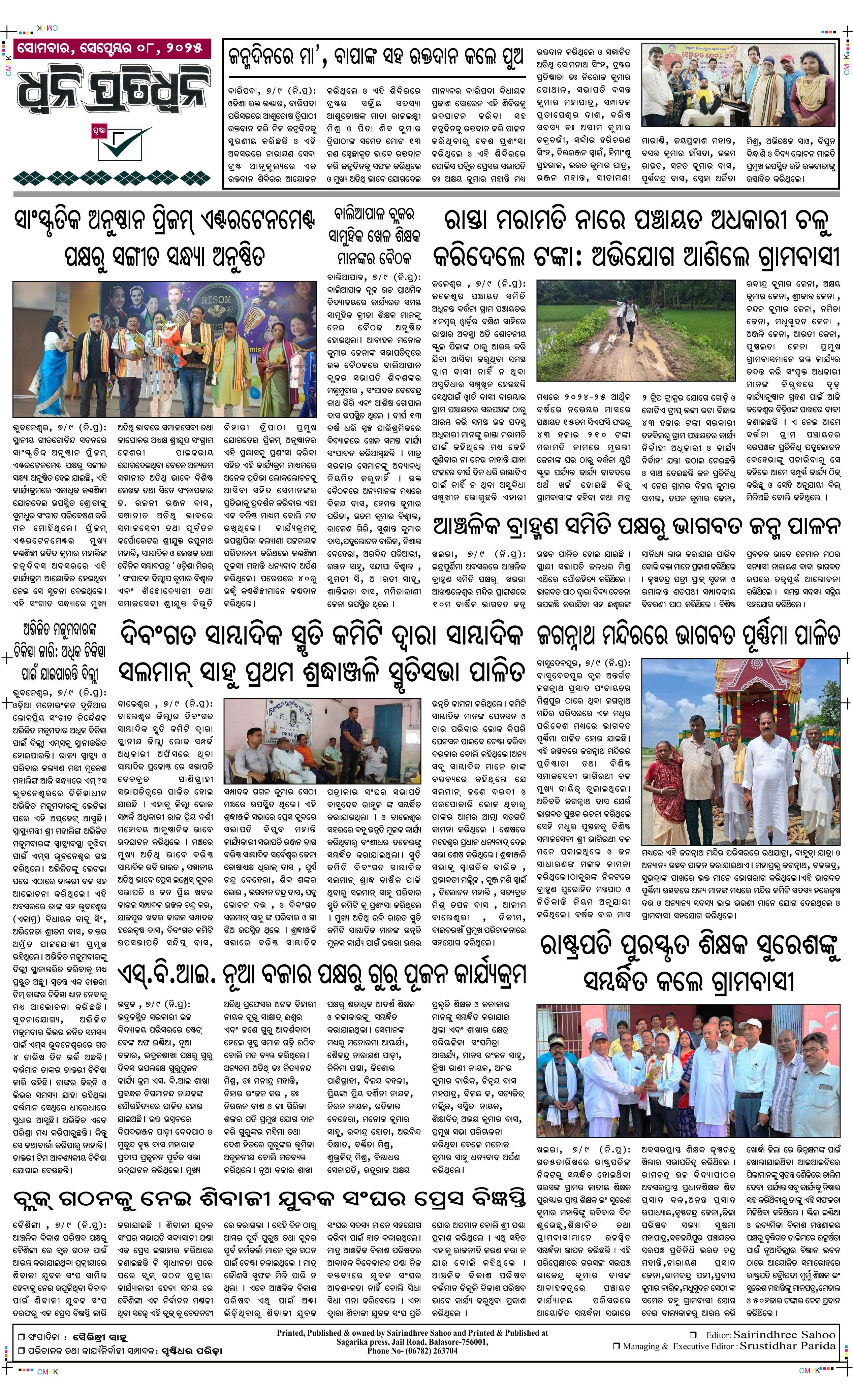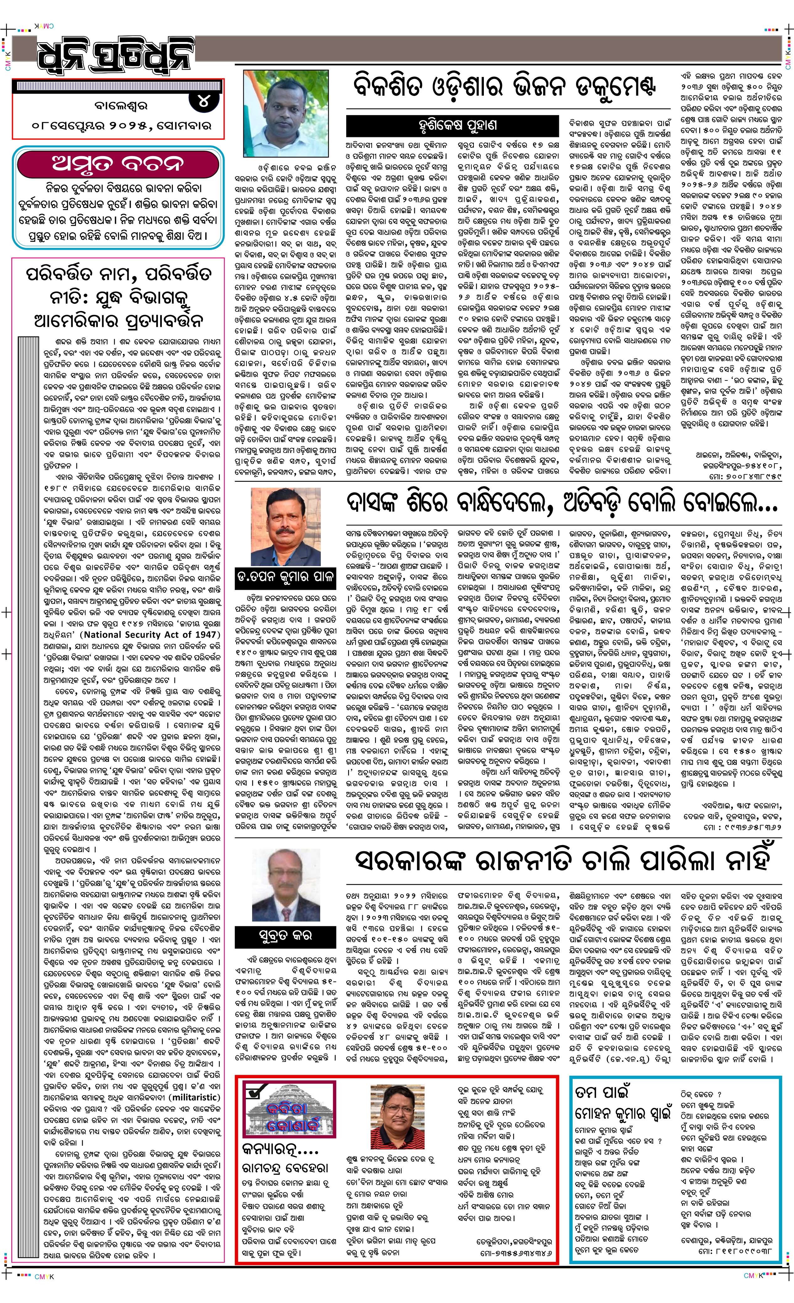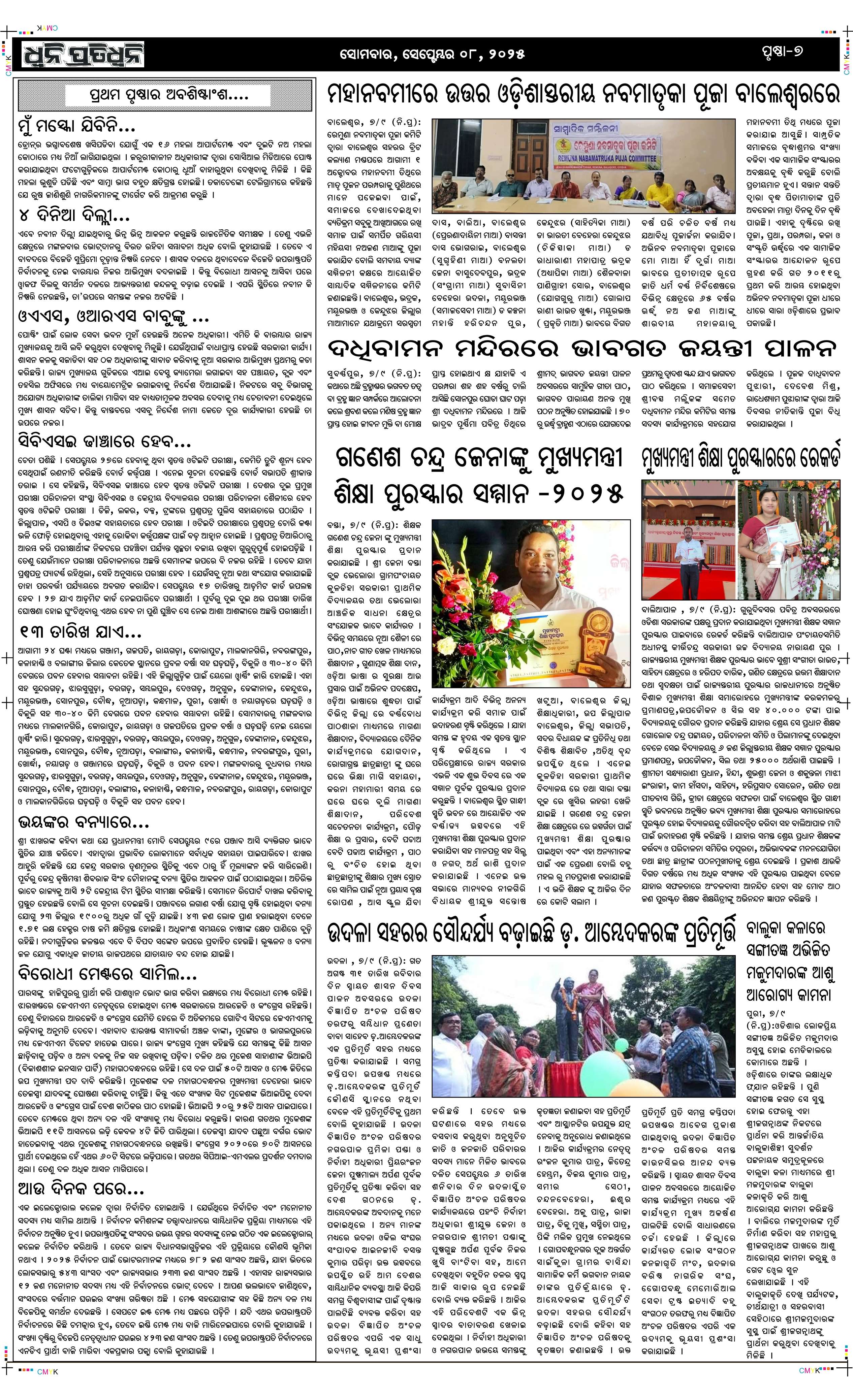 ePaper for 8th September ePaper of Dhwani Pratidhwani for 8th September 2025 Page1 Page2 Page3 Page4 Page5 Page6 Page7 Page8