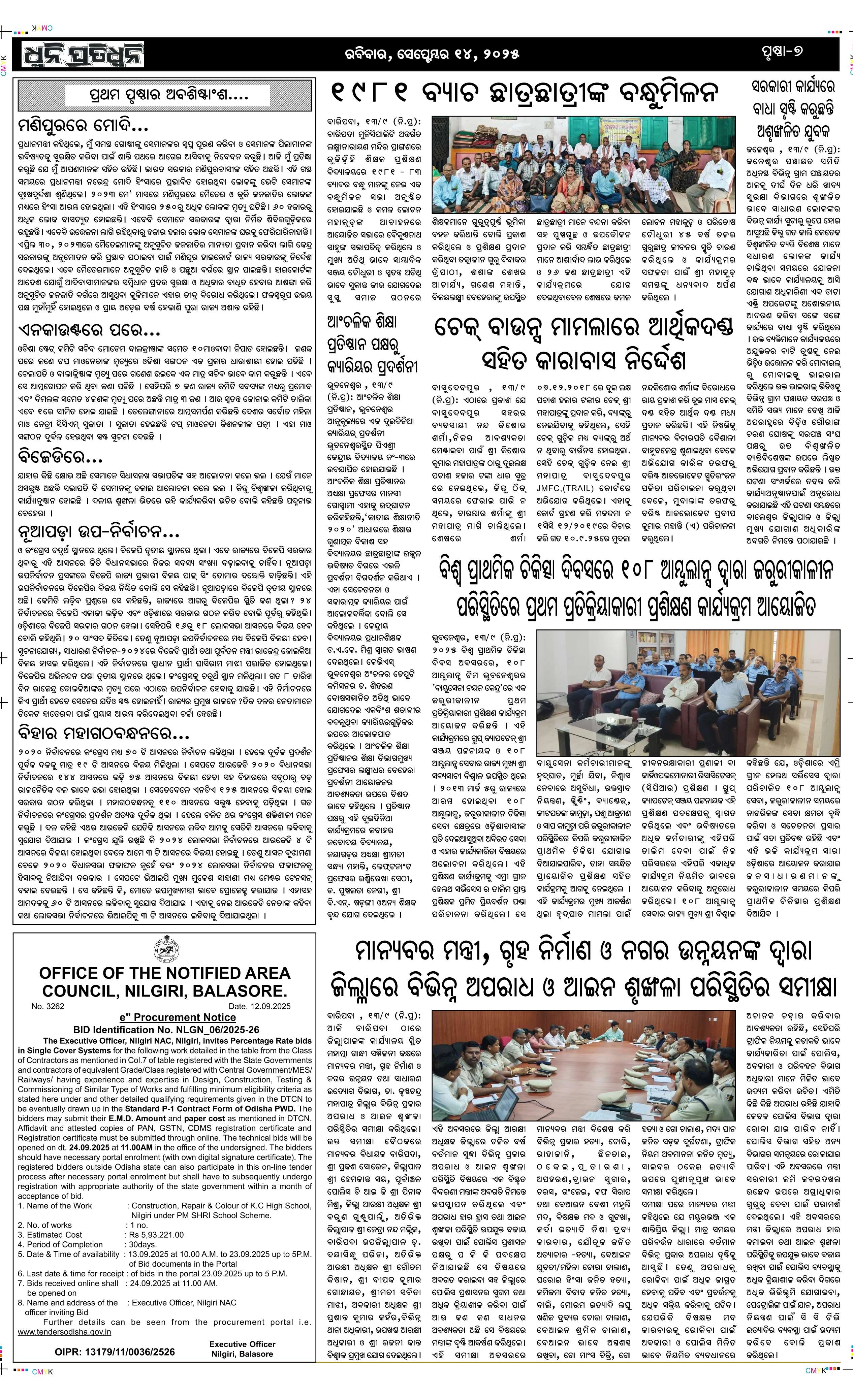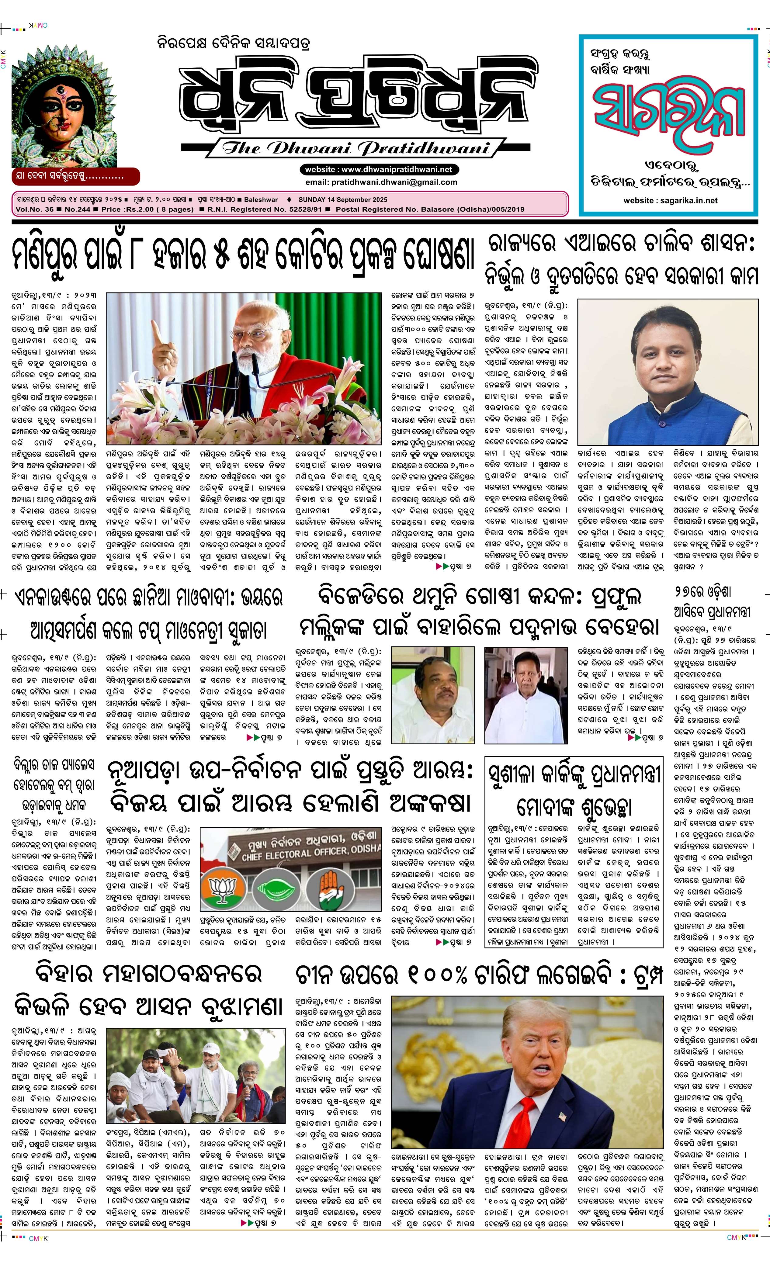 ePaper for 14th September ePaper of Dhwani Pratidhwani for 14th September 2025 Page1 Page2 Page3 Page4 Page5 Page6 Page7 Page8
