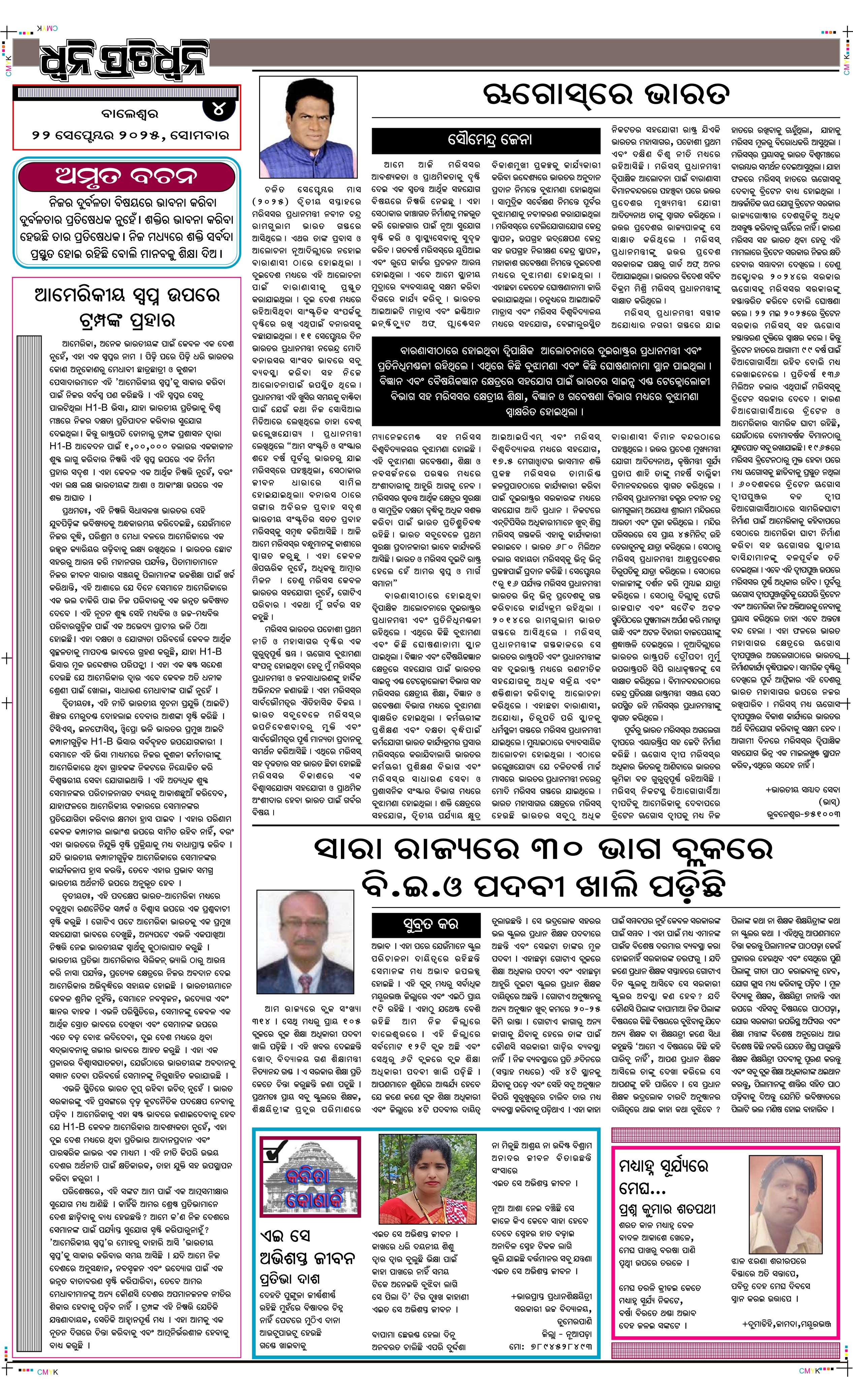 ePaper for 22nd September ePaper of Dhwani Pratidhwani for 22nd September 2025 Page1 Page2 Page3 Page4 Page5 Page6 Page7 Page8