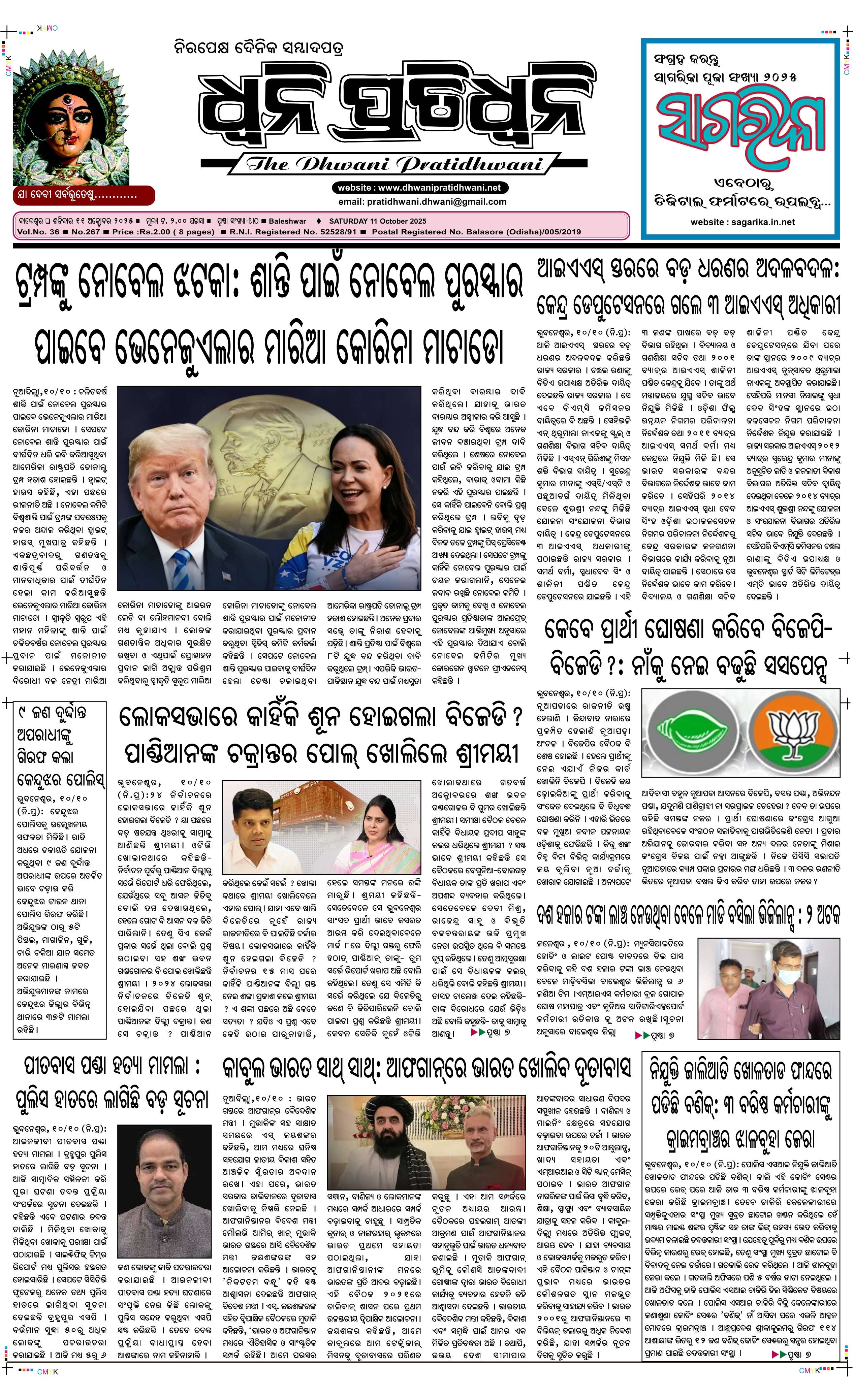 ePaper for 11th October ePaper of Dhwani Pratidhwani for 11th October 2025 Page1 Page2 Page3 Page4 Page5 Page6 Page7 Page8