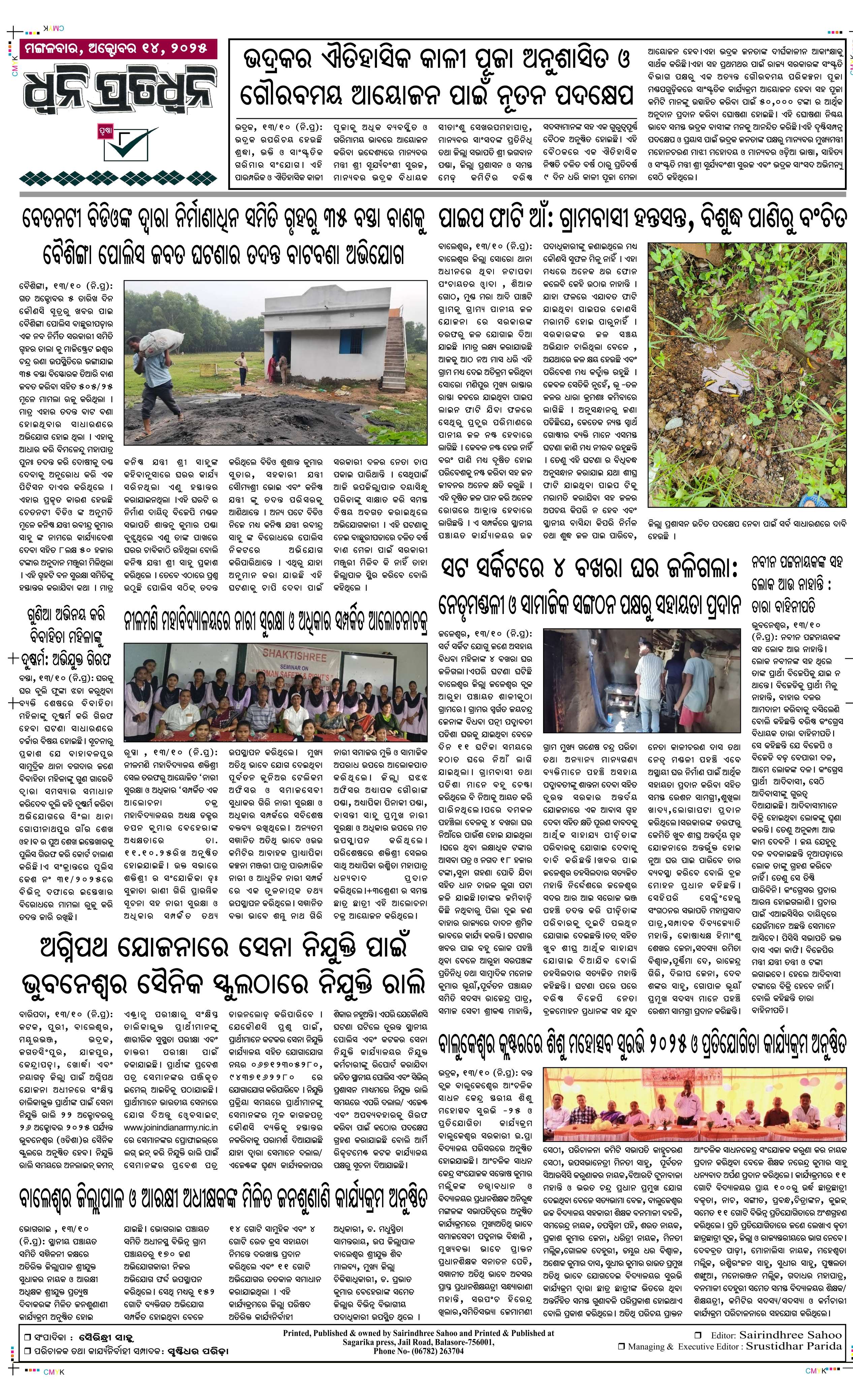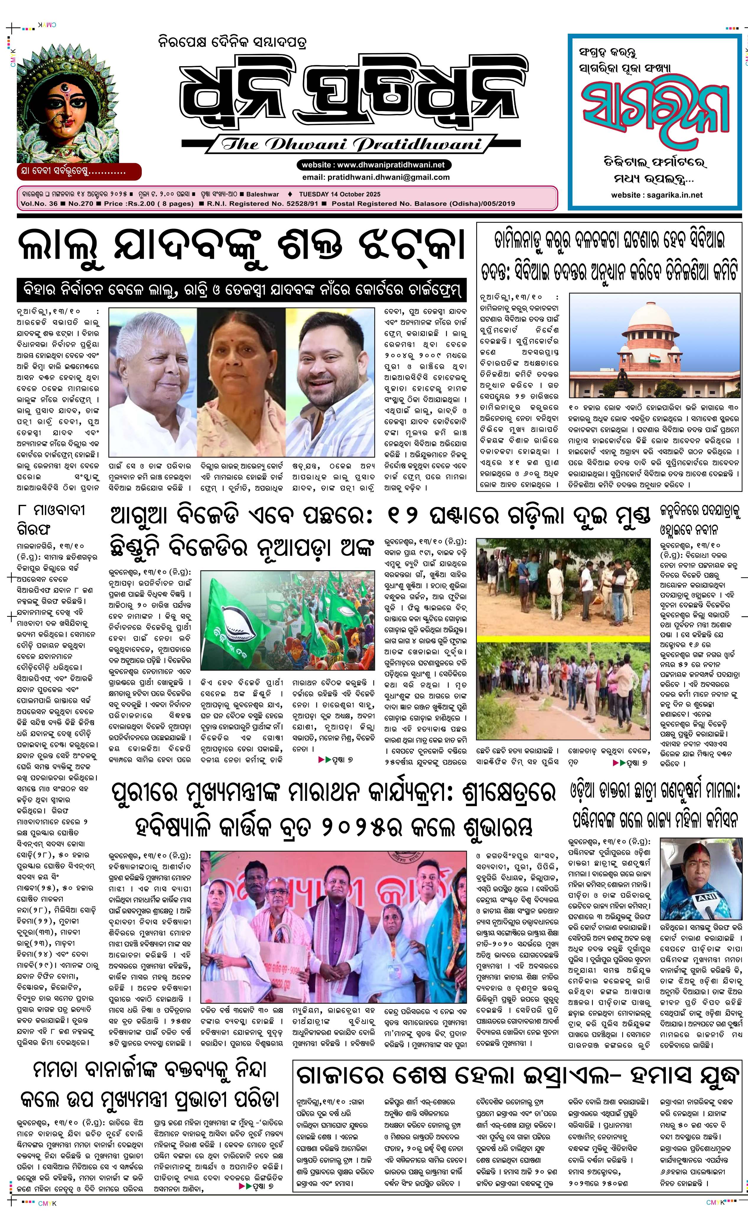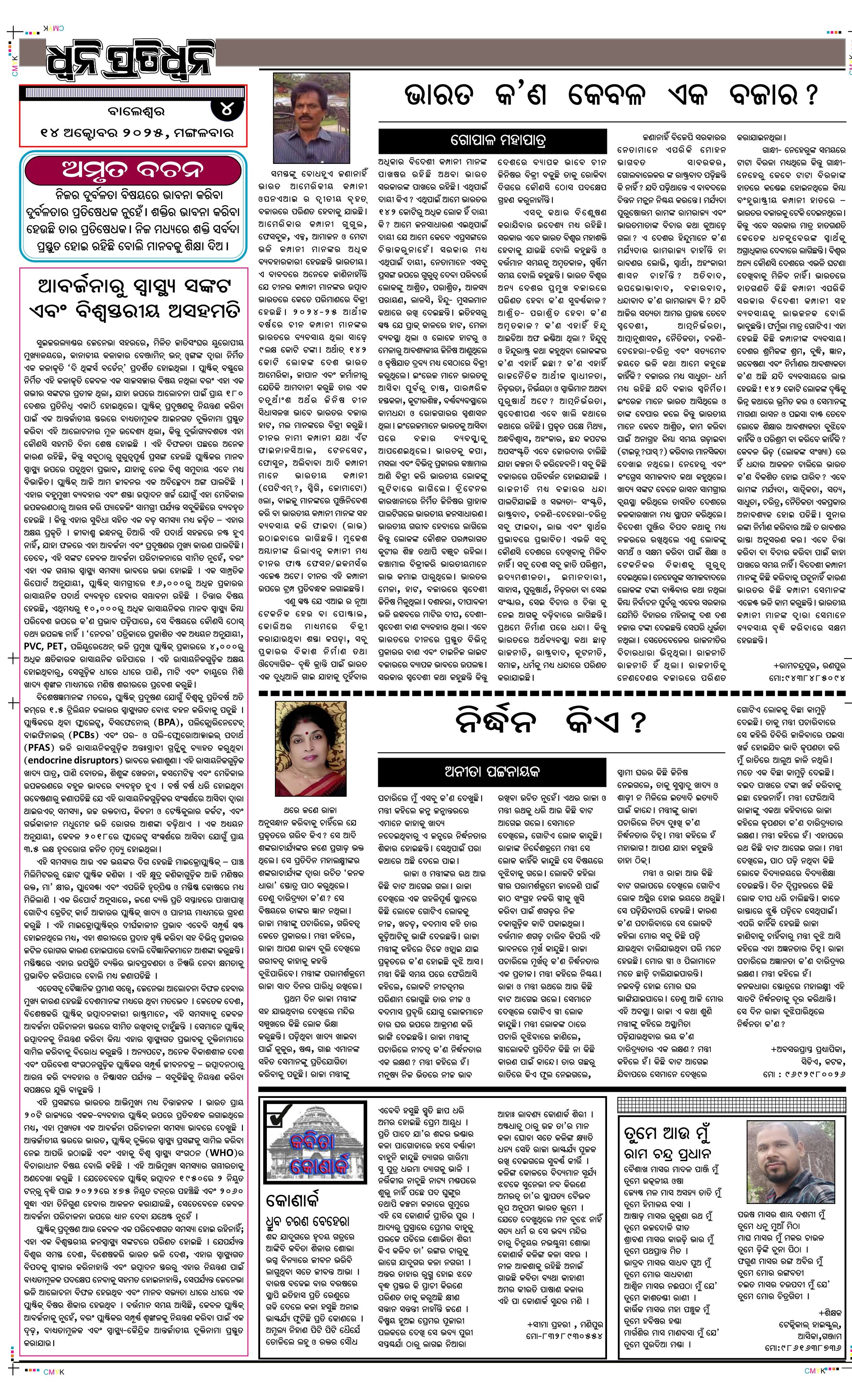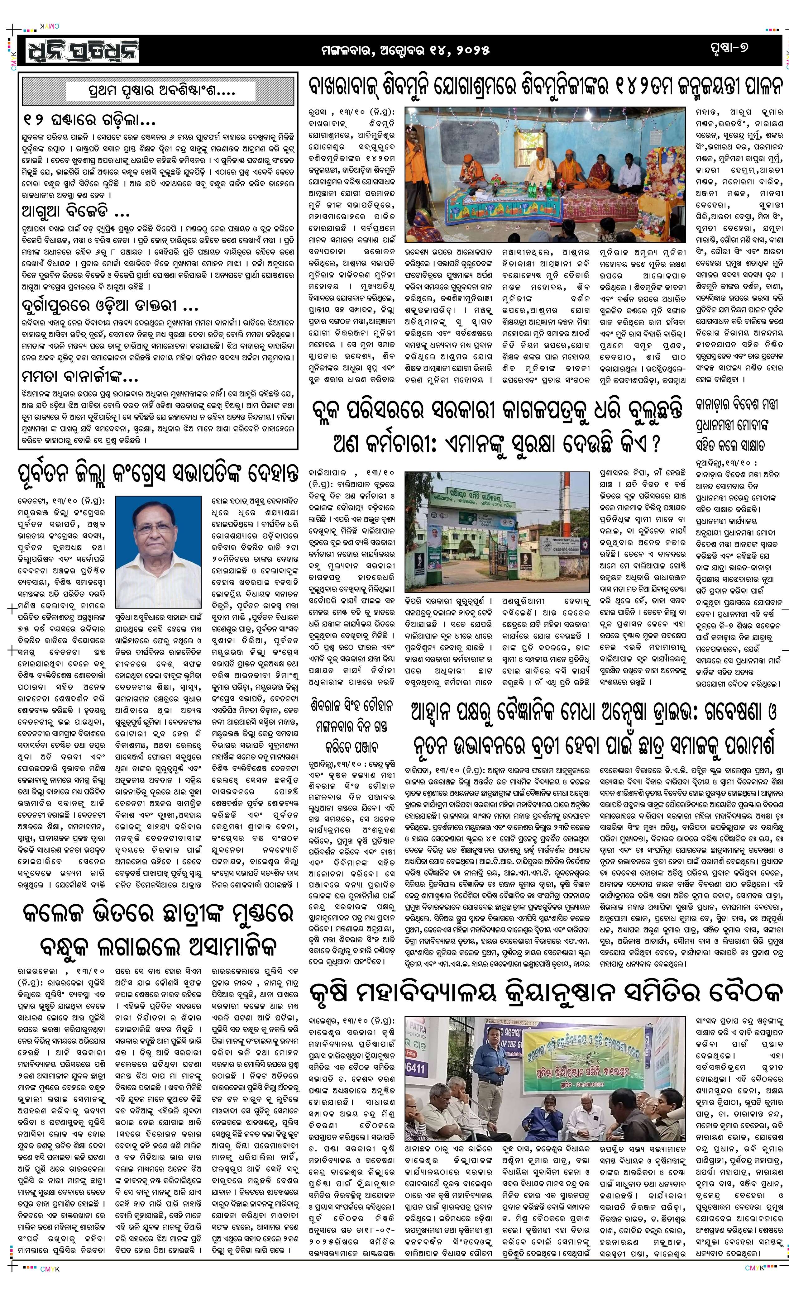 ePaper for 14th October ePaper of Dhwani Pratidhwani for 14th October 2025 Page1 Page2 Page3 Page4 Page5 Page6 Page7 Page8
