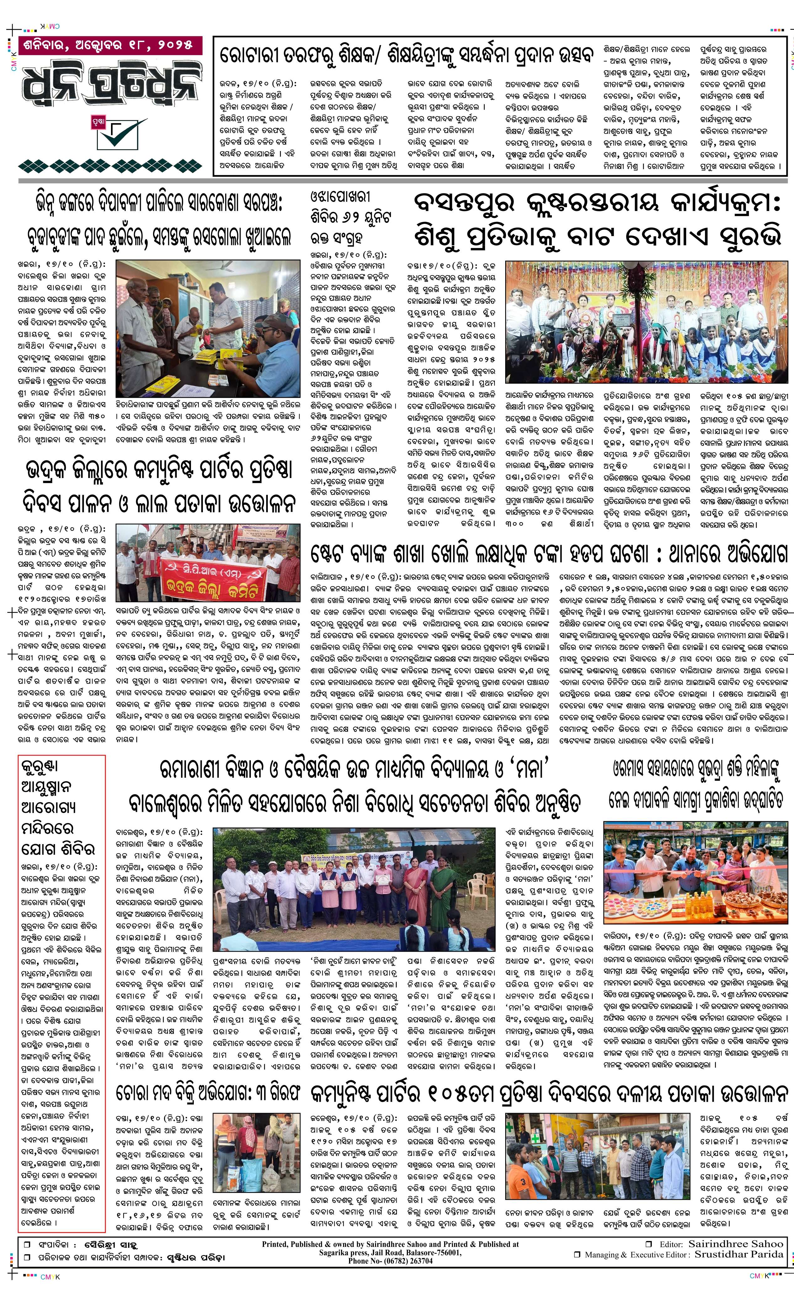 ePaper for 18th October ePaper of Dhwani Pratidhwani for 18th October 2025 Page1 Page2 Page3 Page4 Page5 Page6 Page7 Page8