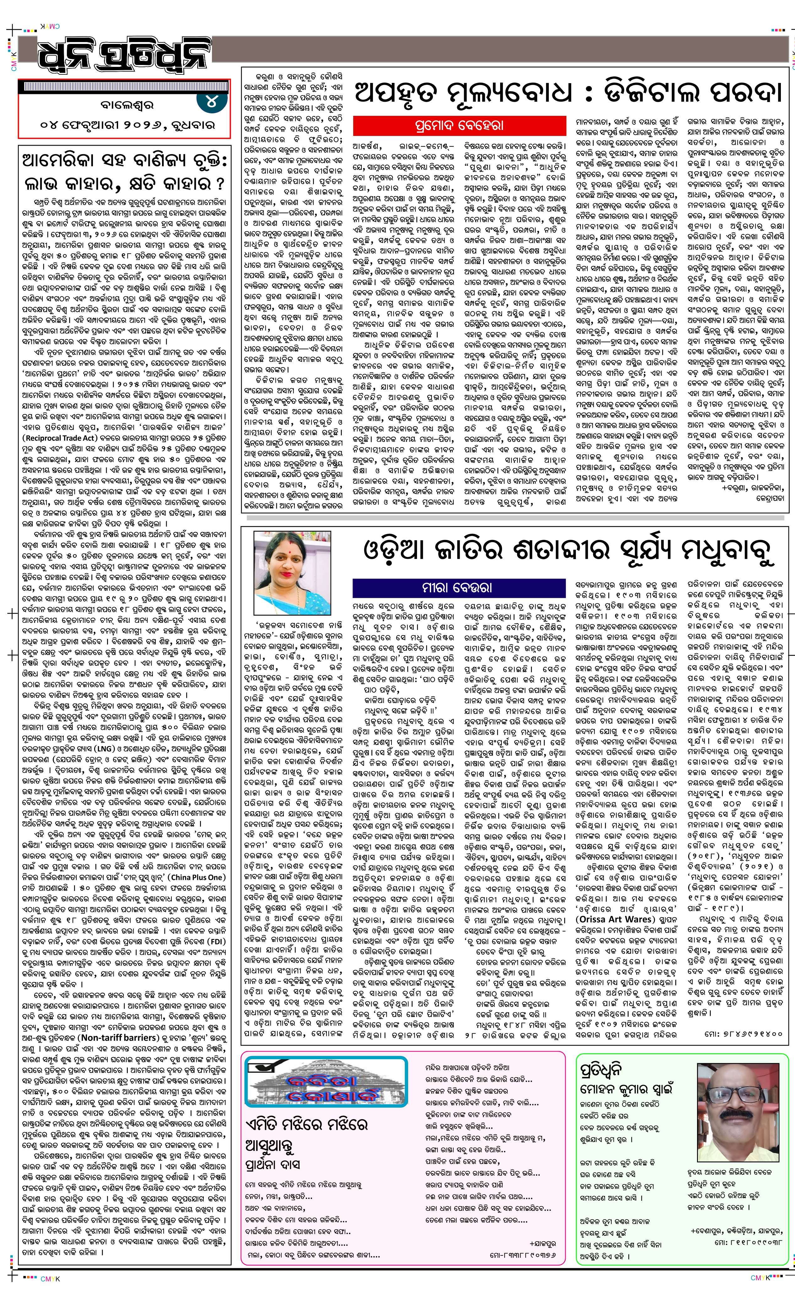 ePaper for 4th February ePaper of Dhwani Pratidhwani for 4th February 2026 Page1 Page2 Page3 Page4 Page5 Page6 Page7 Page8