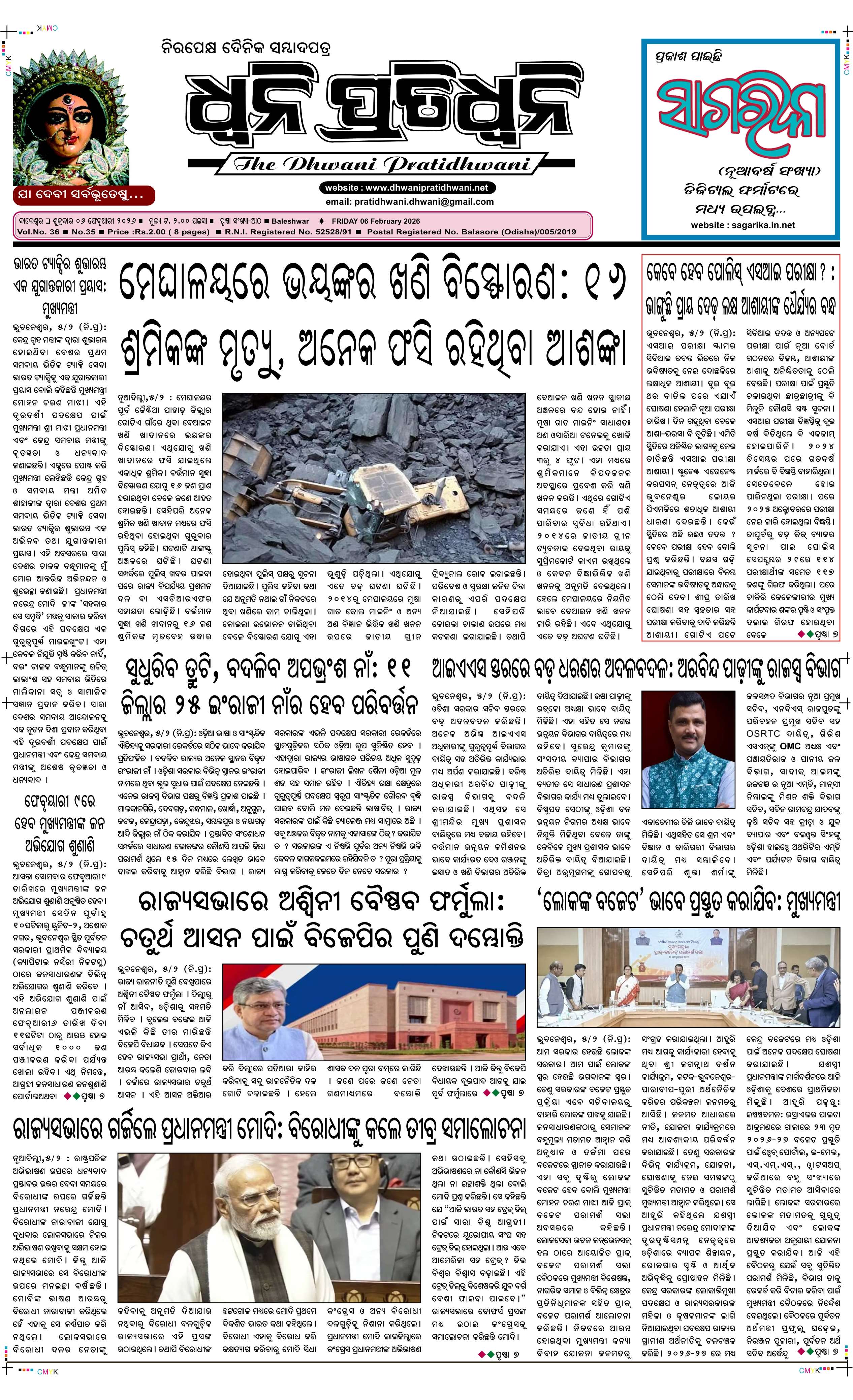 ePaper for 6th February ePaper of Dhwani Pratidhwani for 6th February 2026 Page1 Page2 Page3 Page4 Page5 Page6 Page7 Page8