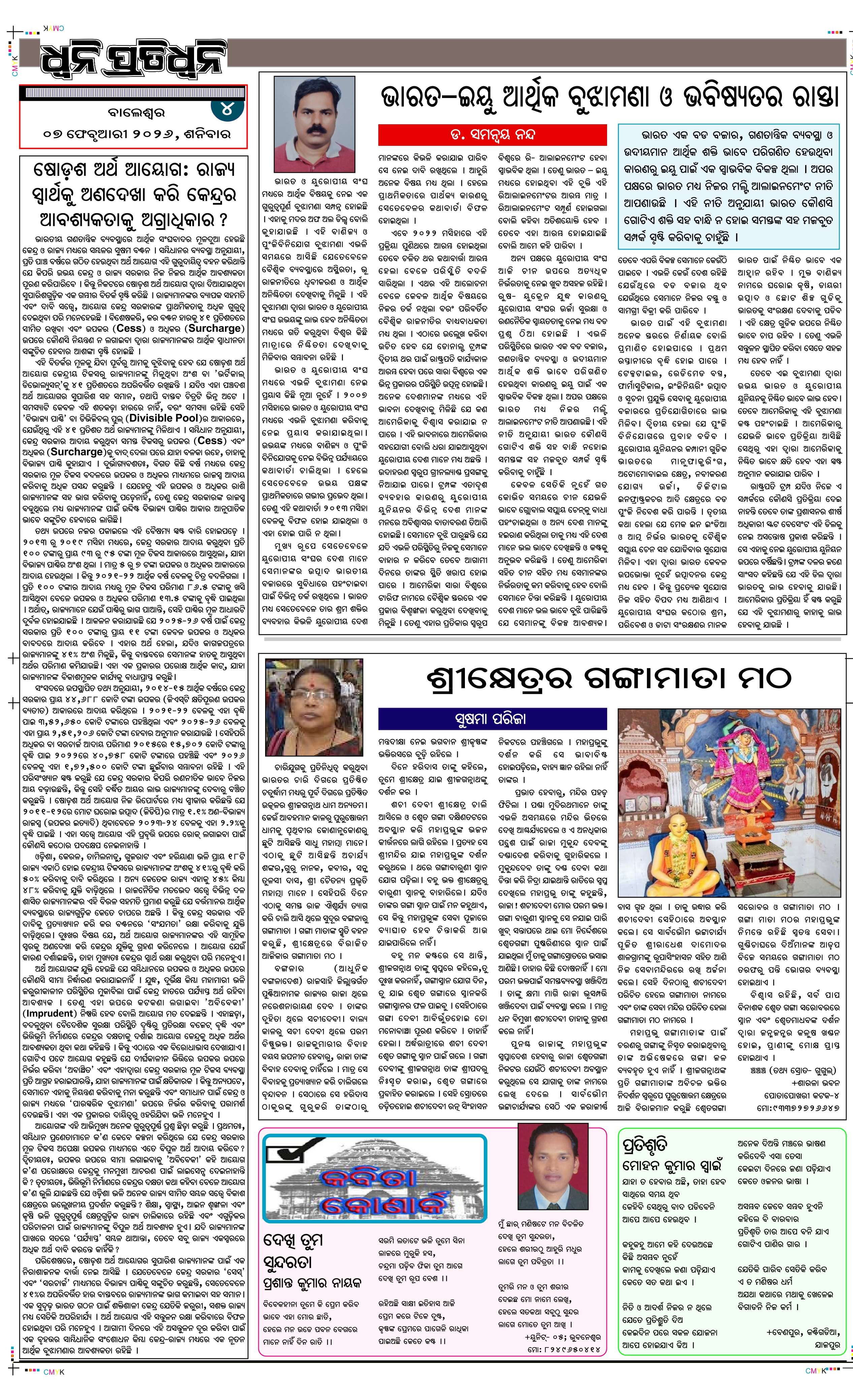 ePaper for 7th February ePaper of Dhwani Pratidhwani for 7th February 2026 Page1 Page2 Page3 Page4 Page5 Page6 Page7 Page8