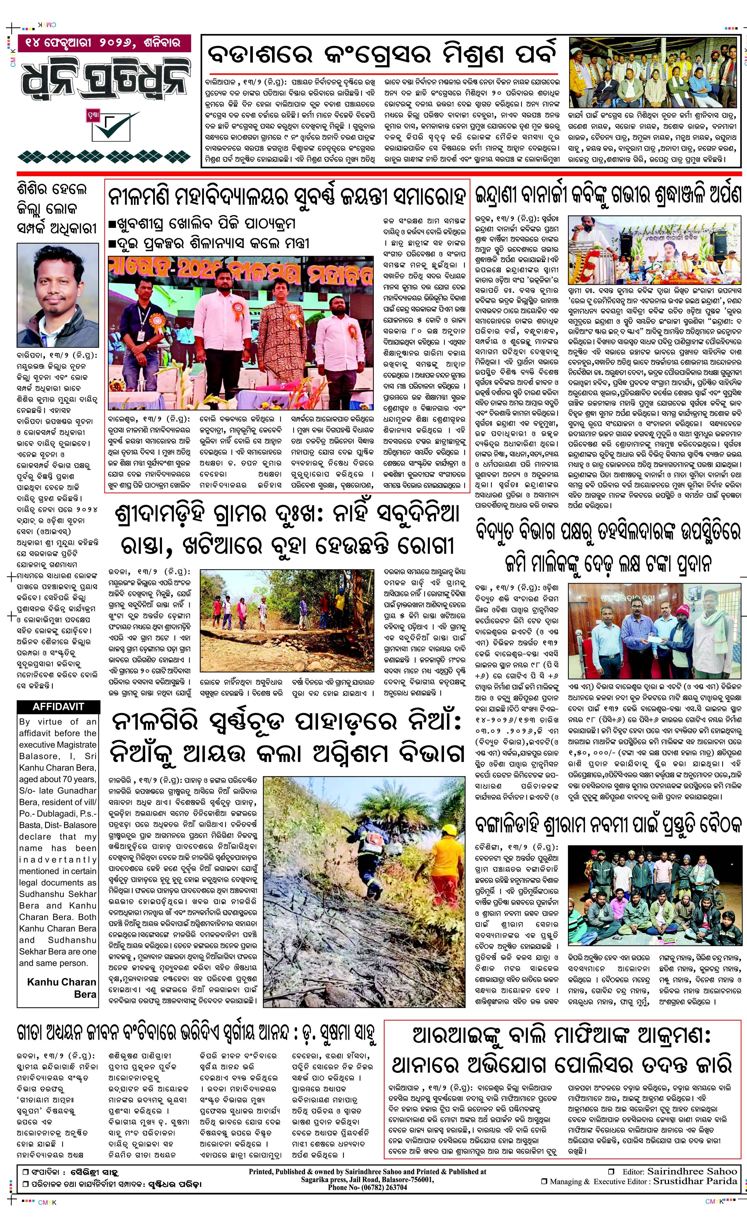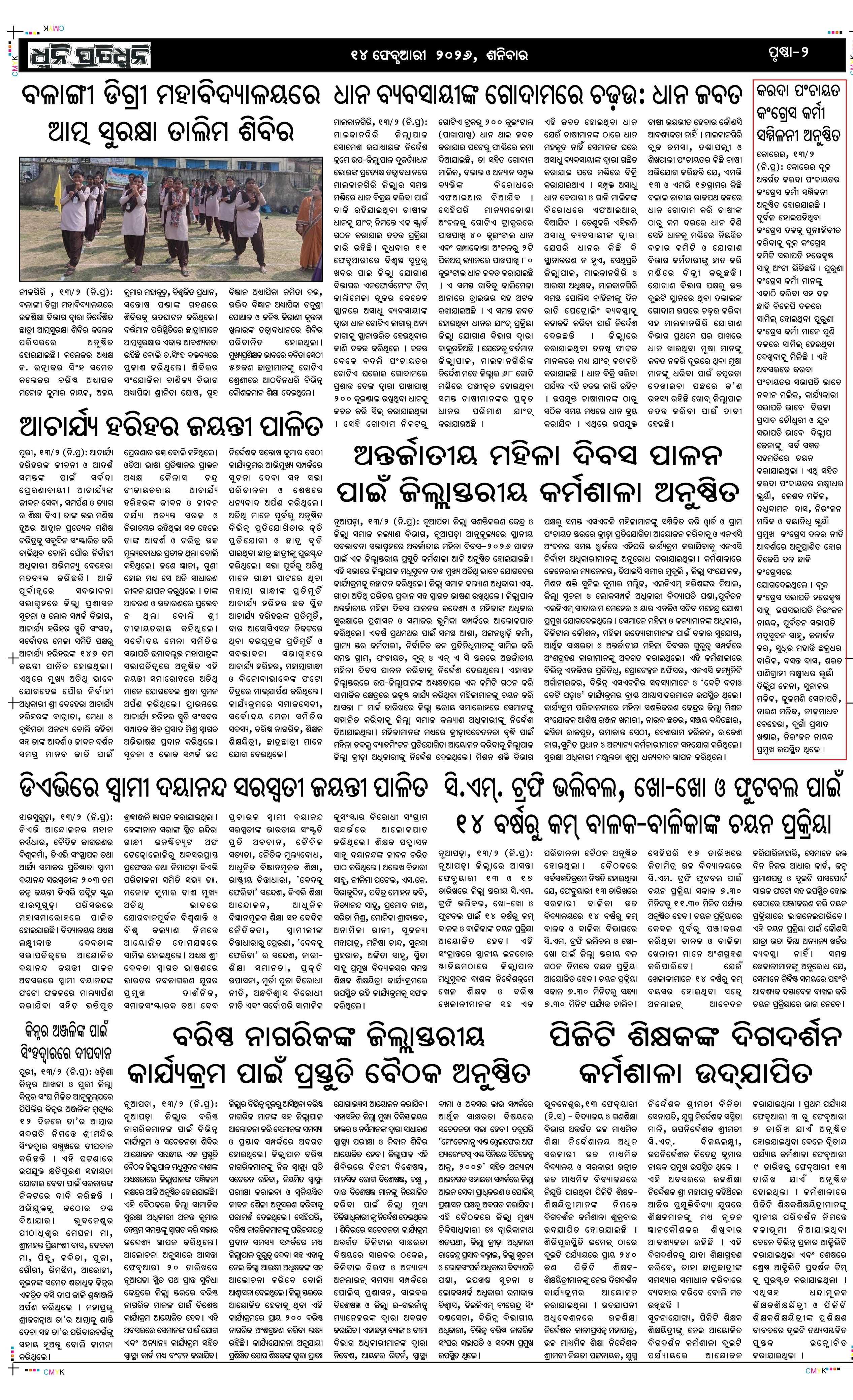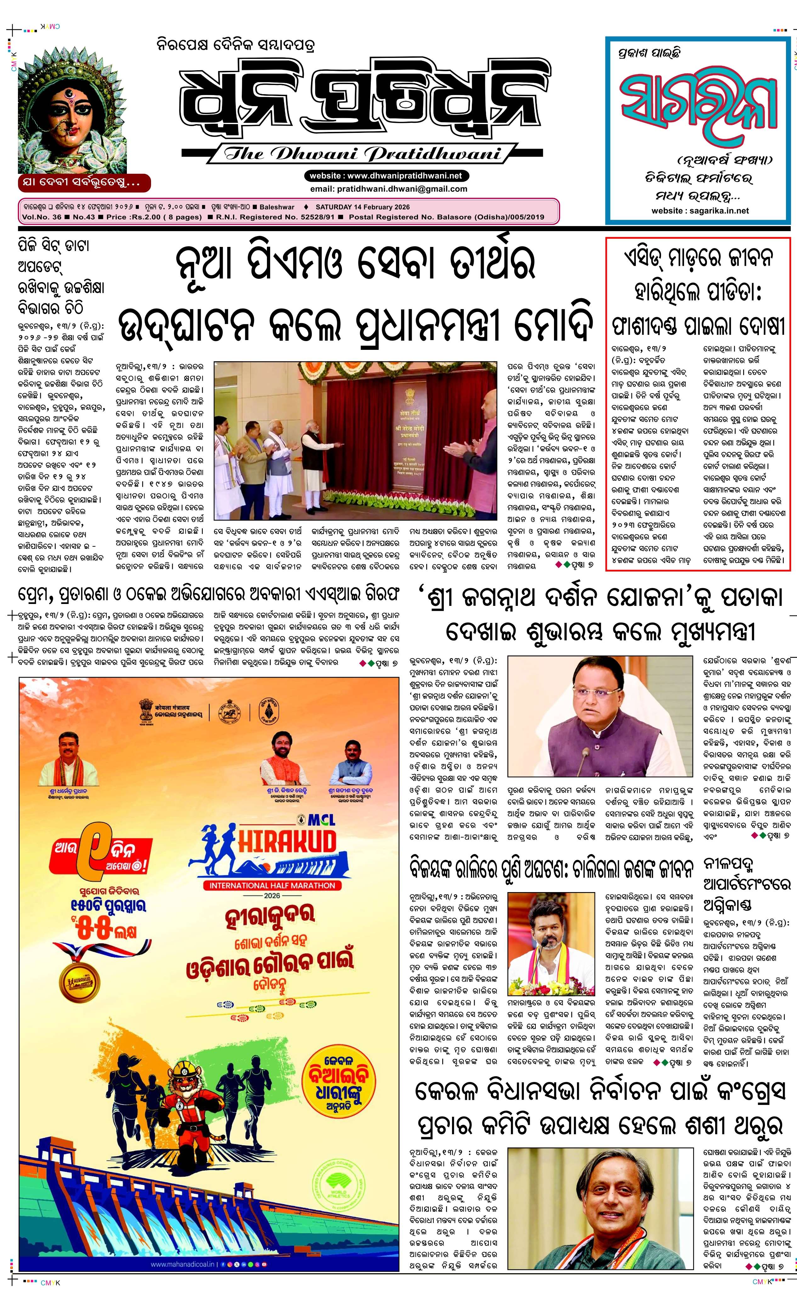 ePaper for 14th February ePaper of Dhwani Pratidhwani for 14th February 2026 Page1 Page2 Page3 Page4 Page5 Page6 Page7 Page8