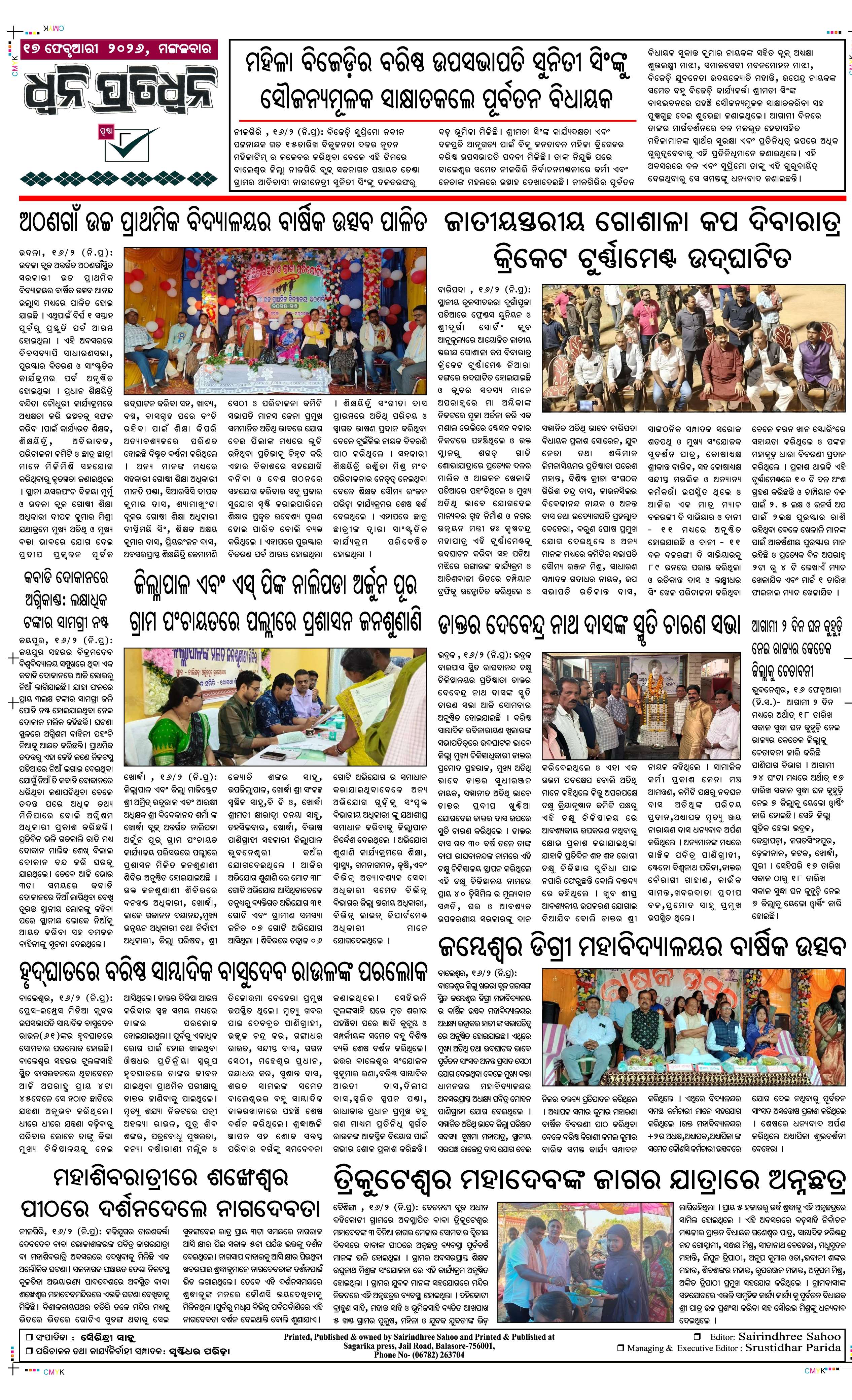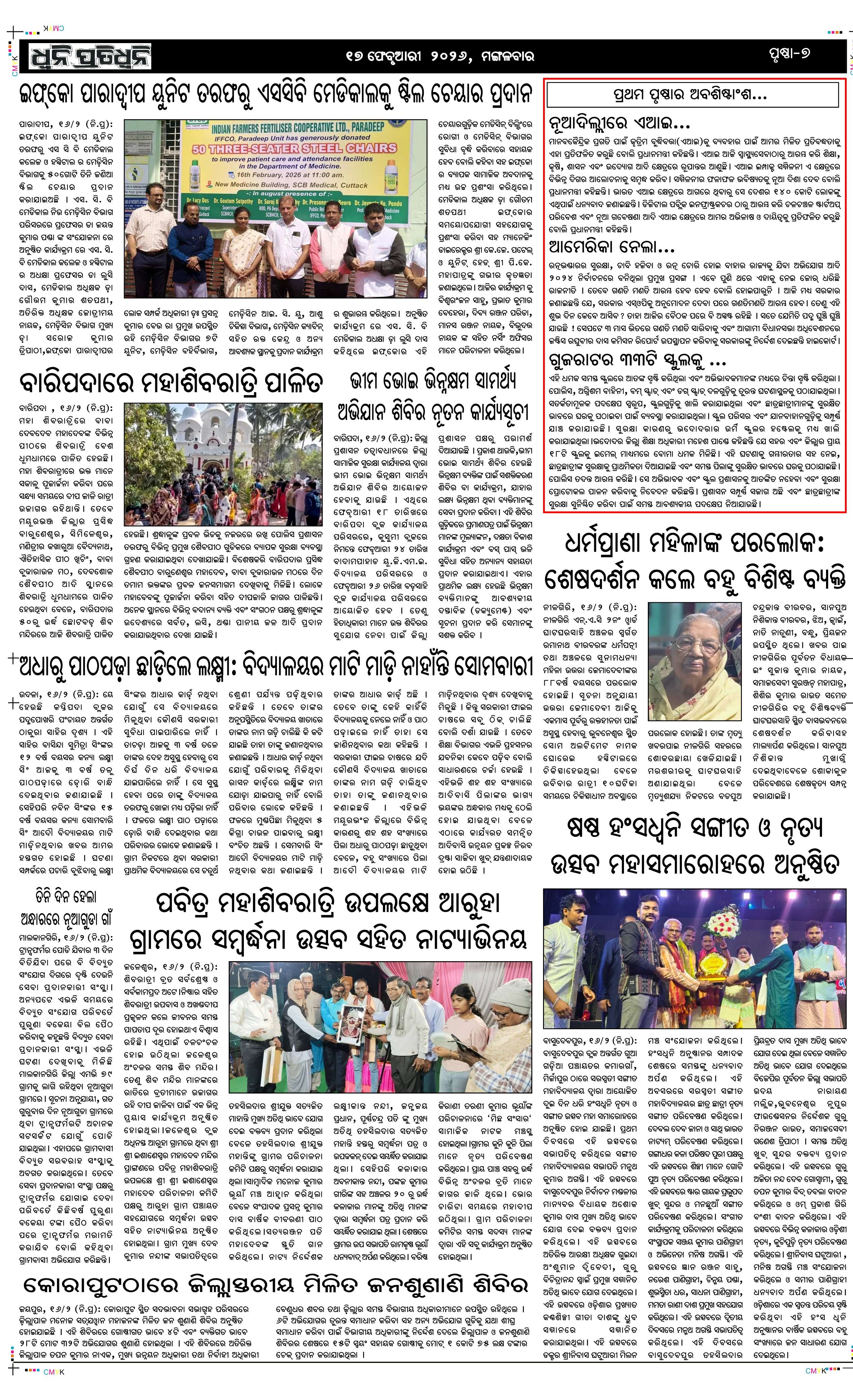 ePaper for 17th February ePaper of Dhwani Pratidhwani for 17th February 2026 Page1 Page2 Page3 Page4 Page5 Page6 Page7 Page8